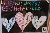Auch in diesem Jahr haben sich die 3.- und 4.-Klässler wieder mit dem Gedanken der diesjährigen Jahreslosung auseinandergesetzt und somit konnten viele kreative Plakate ausgestellt werden. Ihre Gestaltungsideen hatte die Schüler zuvor im Gestaltenunterricht selbstständig erdacht und mit verschiedenen Zeichentechniken erarbeitet. Gemeinsam mit der ganzen Schulgemeinschaft wurde abgestimmt und die Gewinner stehen nun fest.