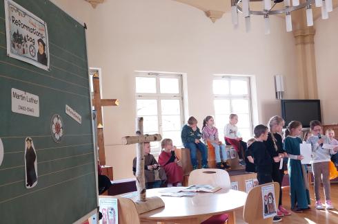 Auch in diesem Jahr trafen sich die Schüler der Bartholomäischule wieder, um den Taten Martin Luthers zu gedenken. Die 2. Klasse gestaltete eine schöne Andacht, die uns mit Spiel, Gesang und Tanz in das lange Wochenende zum Reformationstag begleitete.